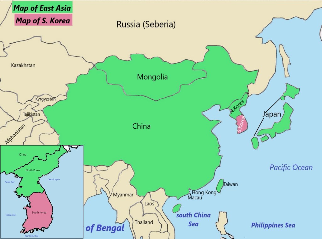South Korea, located in East Asia, occupies the southern part of the Korean Peninsula. It shares a border with North Korea to the north, and is surrounded by the Yellow Sea to the west and the Sea of Japan to the east. The capital and largest city is Seoul.