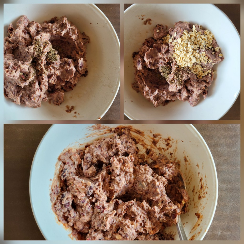 9. Add pepper and salt to taste. If mixture seems wet, add a bit of oats to thicken.