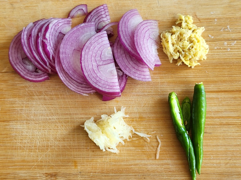- Grate the ginger and garlic.