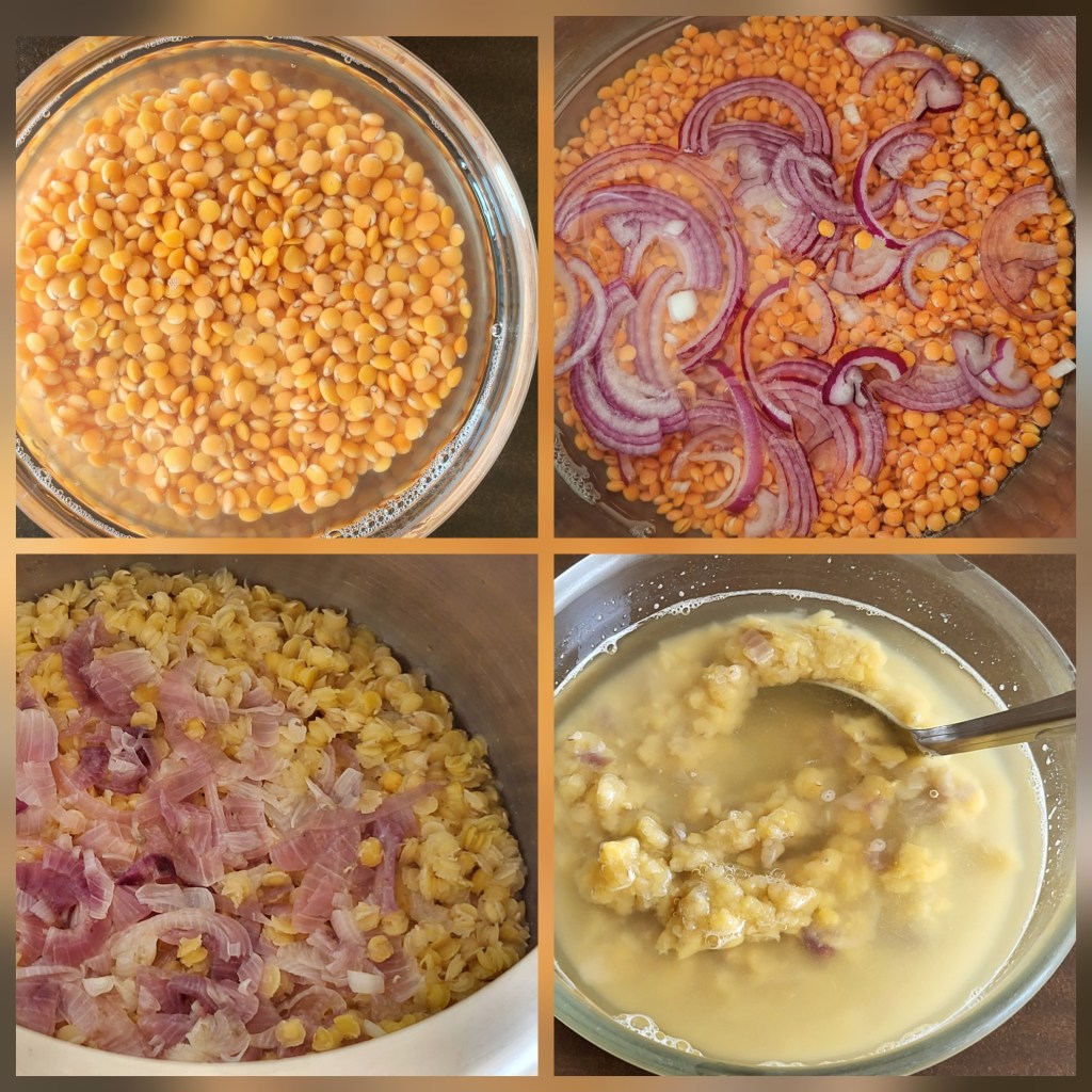 The most popular everyday dal in Bangladesh is Peyaj Diye Mosur Dal (red lentil with onion).