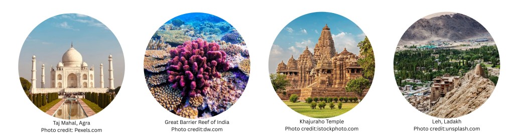 3. Khajuraho Temples:  The Khajuraho Temples are a UNESCO World Heritage Site, famous for their intricate carvings and sculptures. These 10th-century temples display India’s rich cultural heritage and architectural prowess.