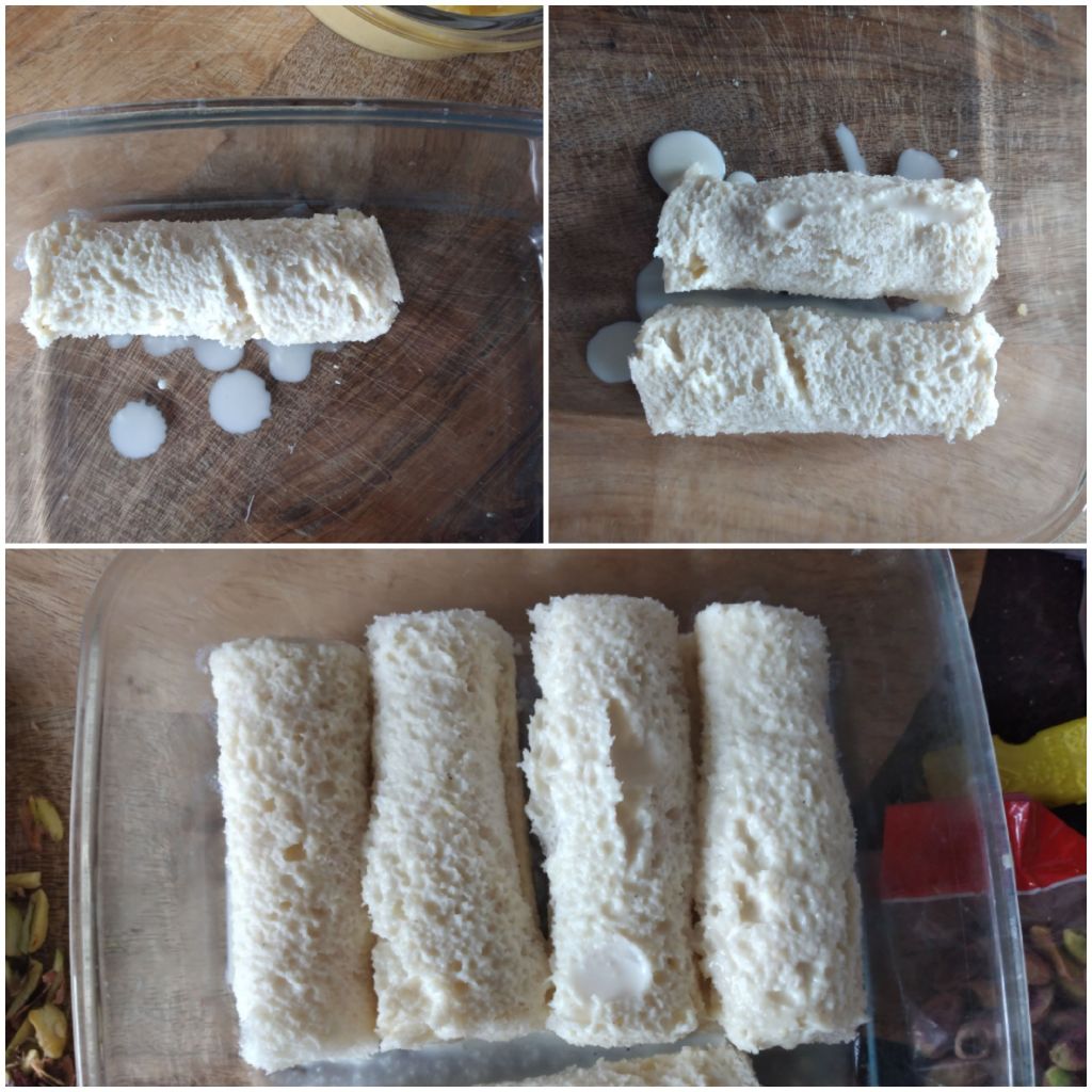 These Bread Moong Rolls melt in the mouth. They are delicious and nutritious. White bread slices spread with rich creamy moong, delicately flavoured with cardamom and soaked in milk thickened with moong. Try it out. You will do it again.
