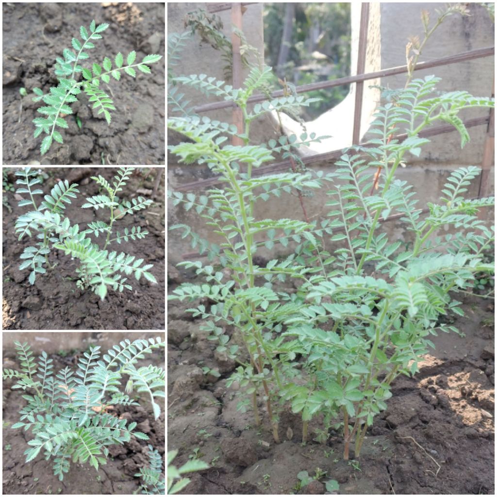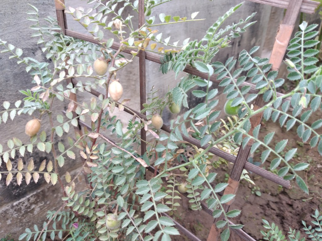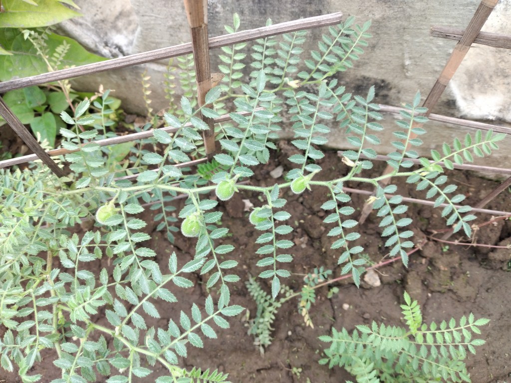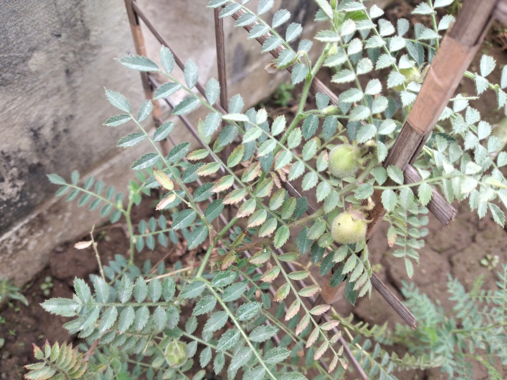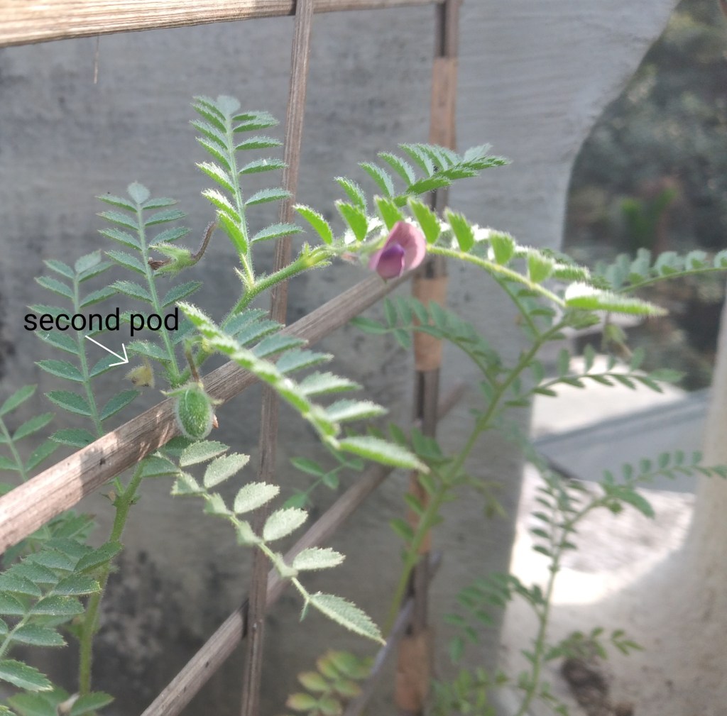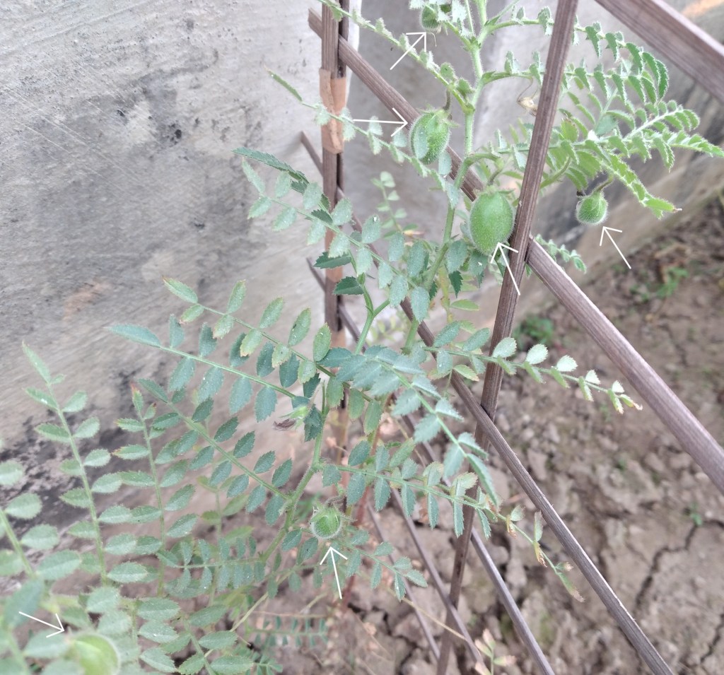 We sowed channa dal seeds again in winter (2020). Every plant started with a single stem with alternate array of compound leaves. Soon it branches out making the plant spread out and look bushy. These pictures are from the new sets of experiments.