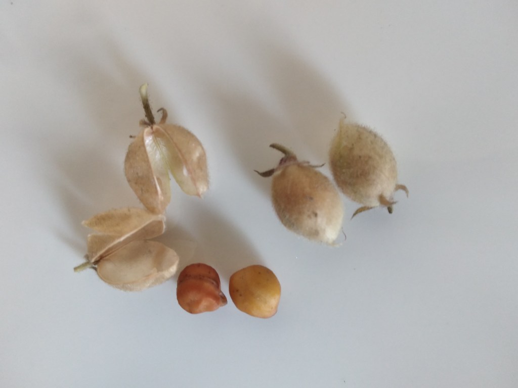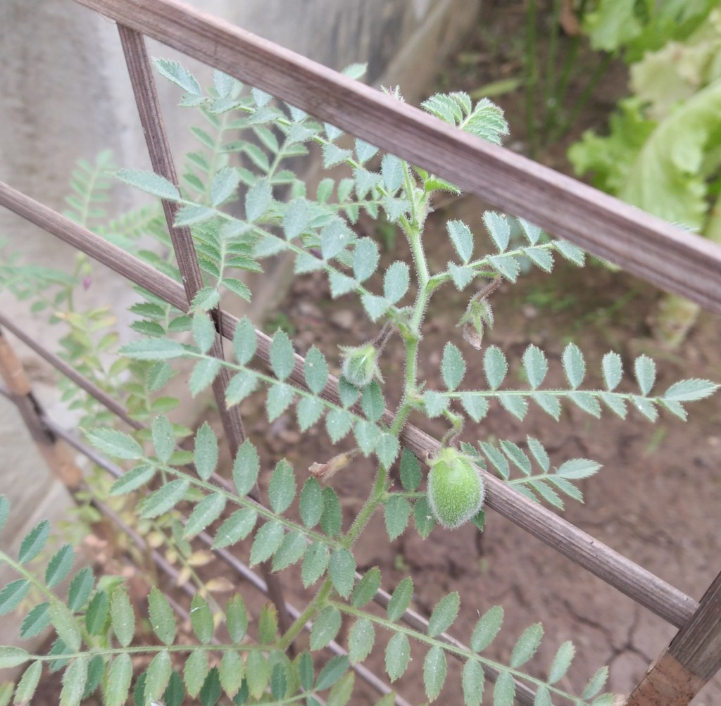 Our first harvest of the first 4 pods of channa dal. Each pod had one seed inside.