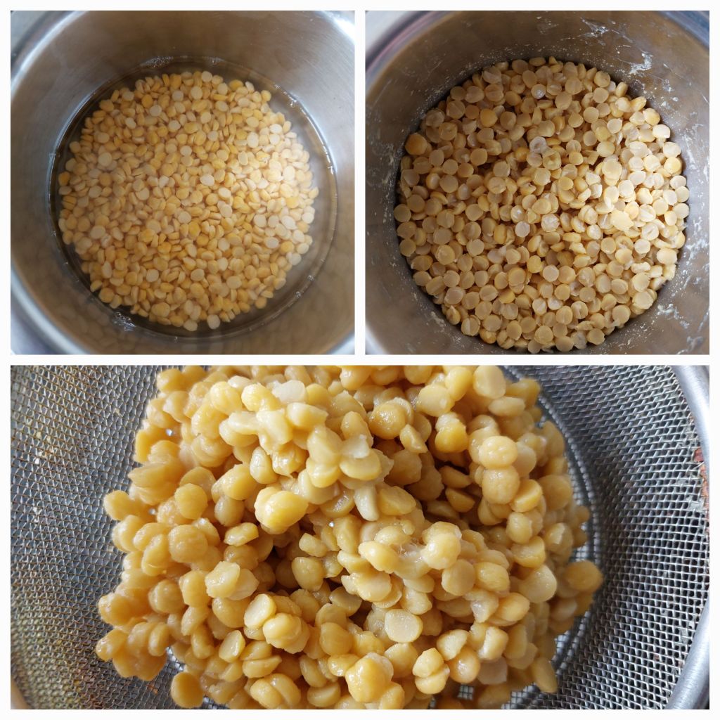 - Wash and cook the channa dal with ¼ tsp of salt.