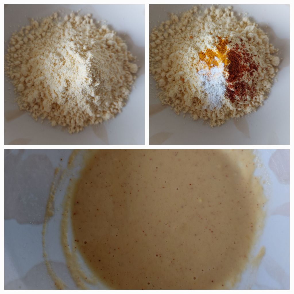 11. Add turmeric, chilli, baking powder and salt and mix well.