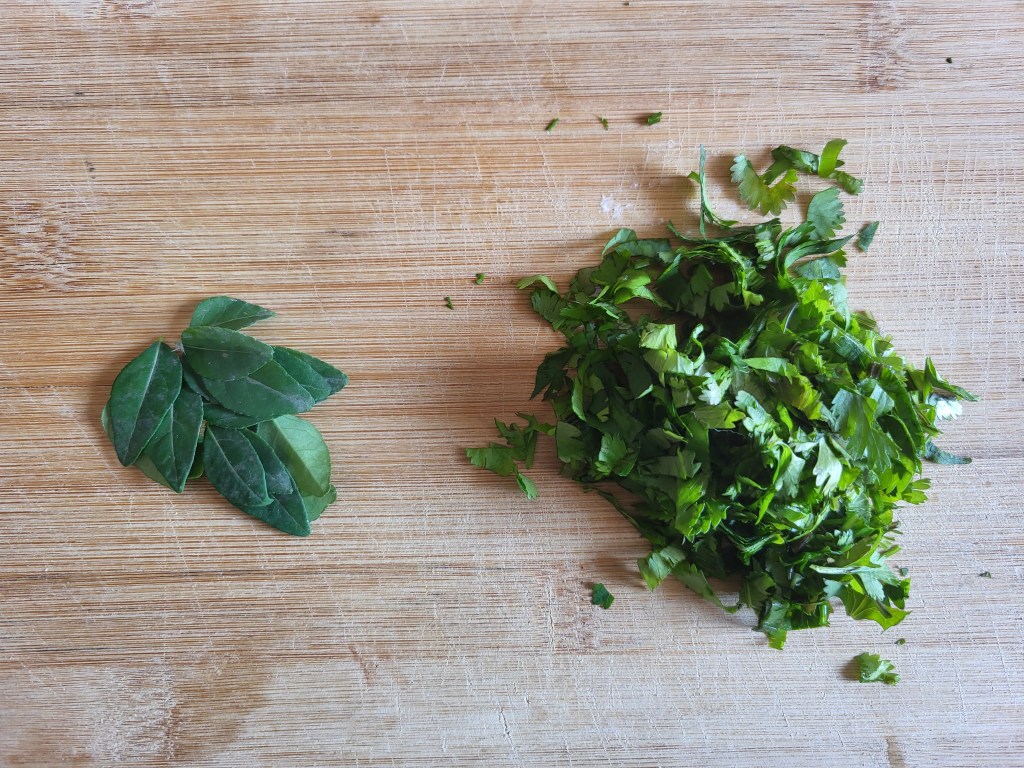 A sprig of curry leaves