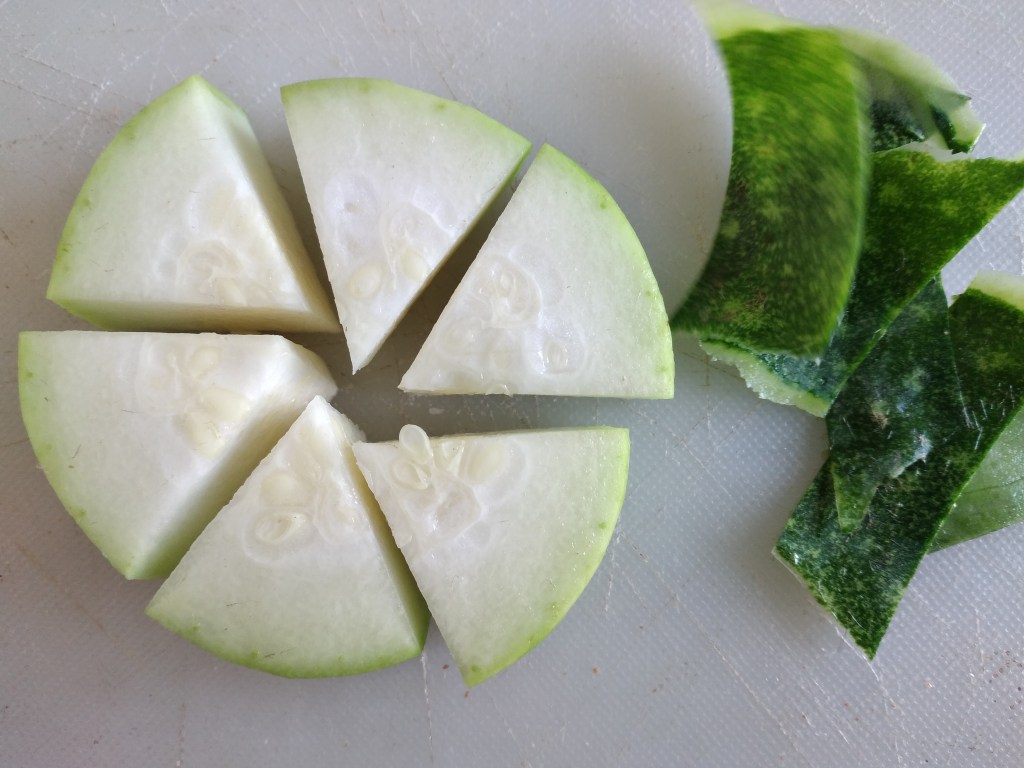 The white gourd is called kumora in Assamese. The tender gourd is called Jali kumora. It is full of nutrients and low in saturated fat. It contains lot of water, therefore it is good for the summer. It is considered as one of the healthiest vegetable.