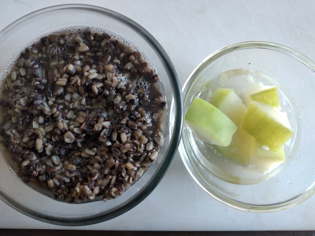 3. Wash and cook the dal with 1 cup of water and ½ tsp of salt in the same cooker. After the 1st whistle, reduce the heat to minimum and cook for 2 minutes. Switch off the heat and allow it to cool.