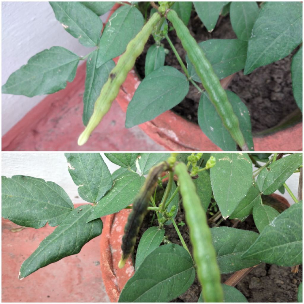 Soon one of the pods began to turn yellowish. We were worried, thinking it may dry and fall off.