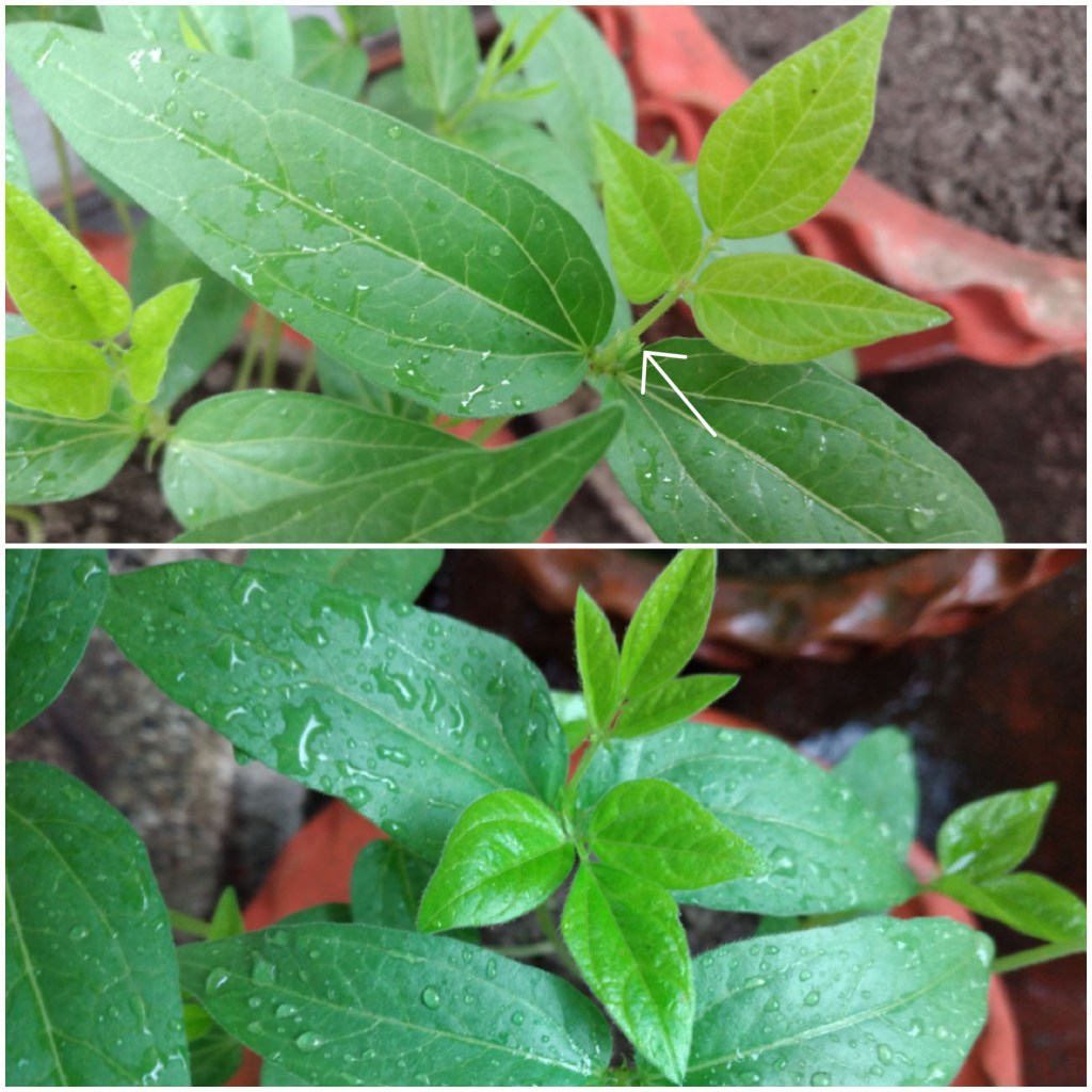 15 days later small buds were noticed in between the true leaves in all the plants.