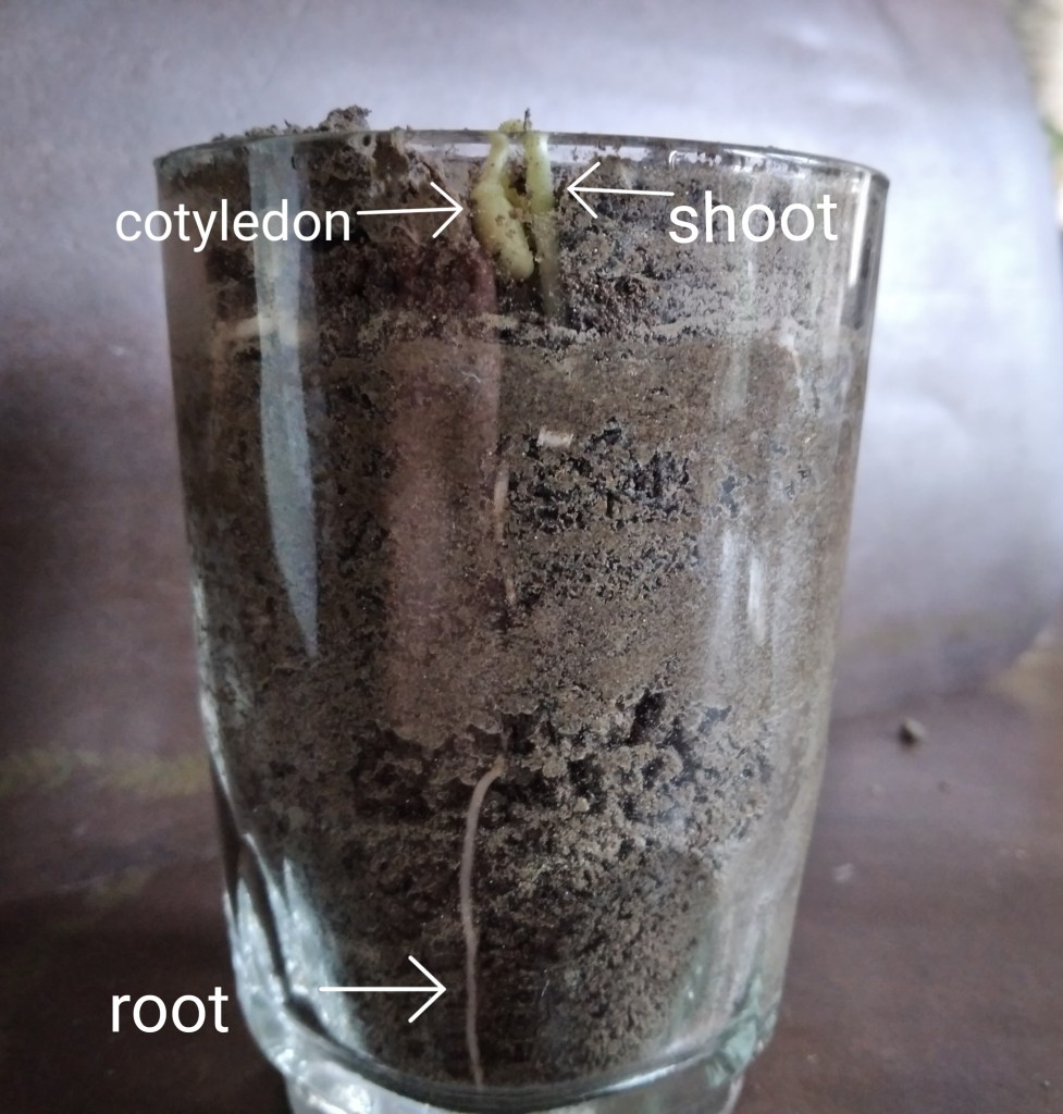 On 4th day, both in the glass as well as in the pot, the shoots emerged above the soil with the cotyledons.