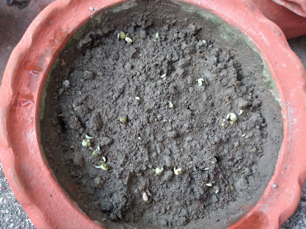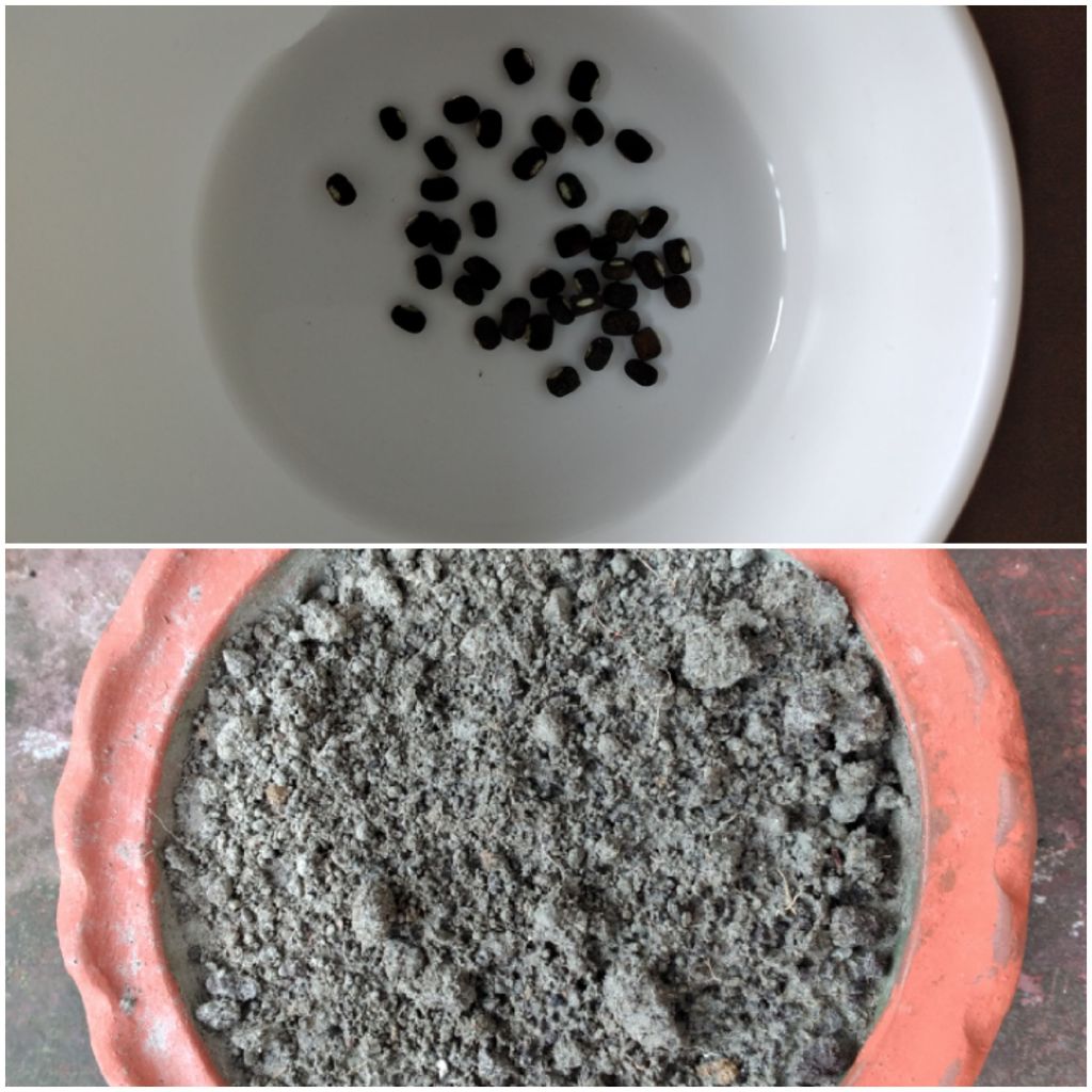 Prepared a pot for the plants and soaked a few moong seeds for about 4 hours.