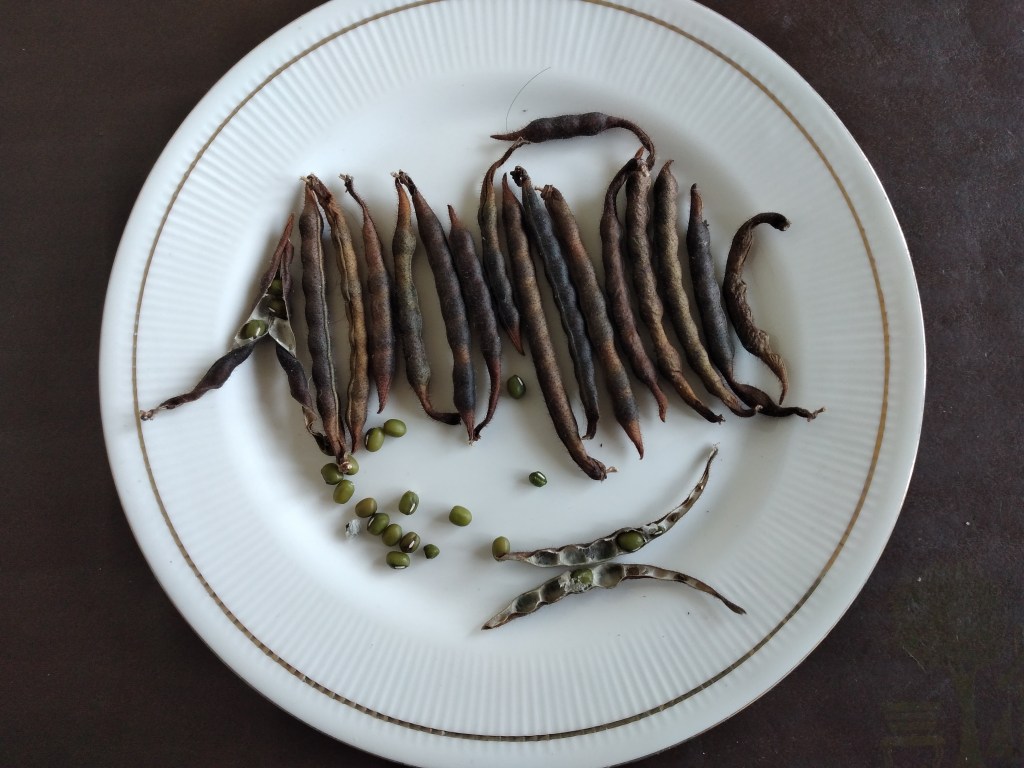 Day by day more pods turned yellow and then blackish brown. Collected all the pods and let them dry. To me it looked like beautiful harvest on the plate.