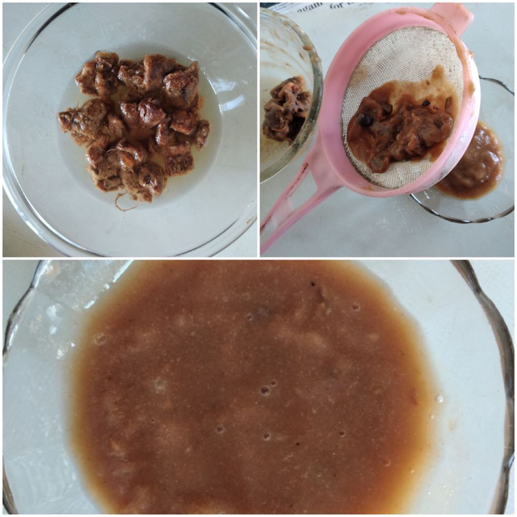 Soak a few fresh/dried tamarind in little hot water for about 10 minutes. Crush them with your finger and strain the liquid through a sieve.